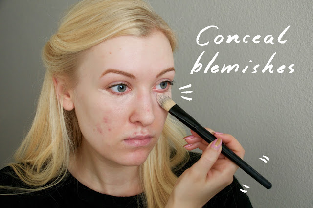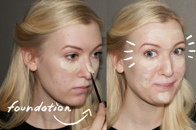 Step 1: First I start out with a clean face, and because I’m prone to oily skin I apply a very light moisturizer beforehand. If your skin is very dry, it will try and compensate by producing more oils than normal, which will lead to greasy skin. I really don’t want that. Also, if you are dealing with any dried scabs from healing acne (I’m a picker), moisturizing them will keep you from having visibly dry flaky spots.