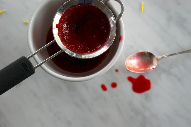 Start with a handful or so of raspberries and whizz them up in a food processor or blender.